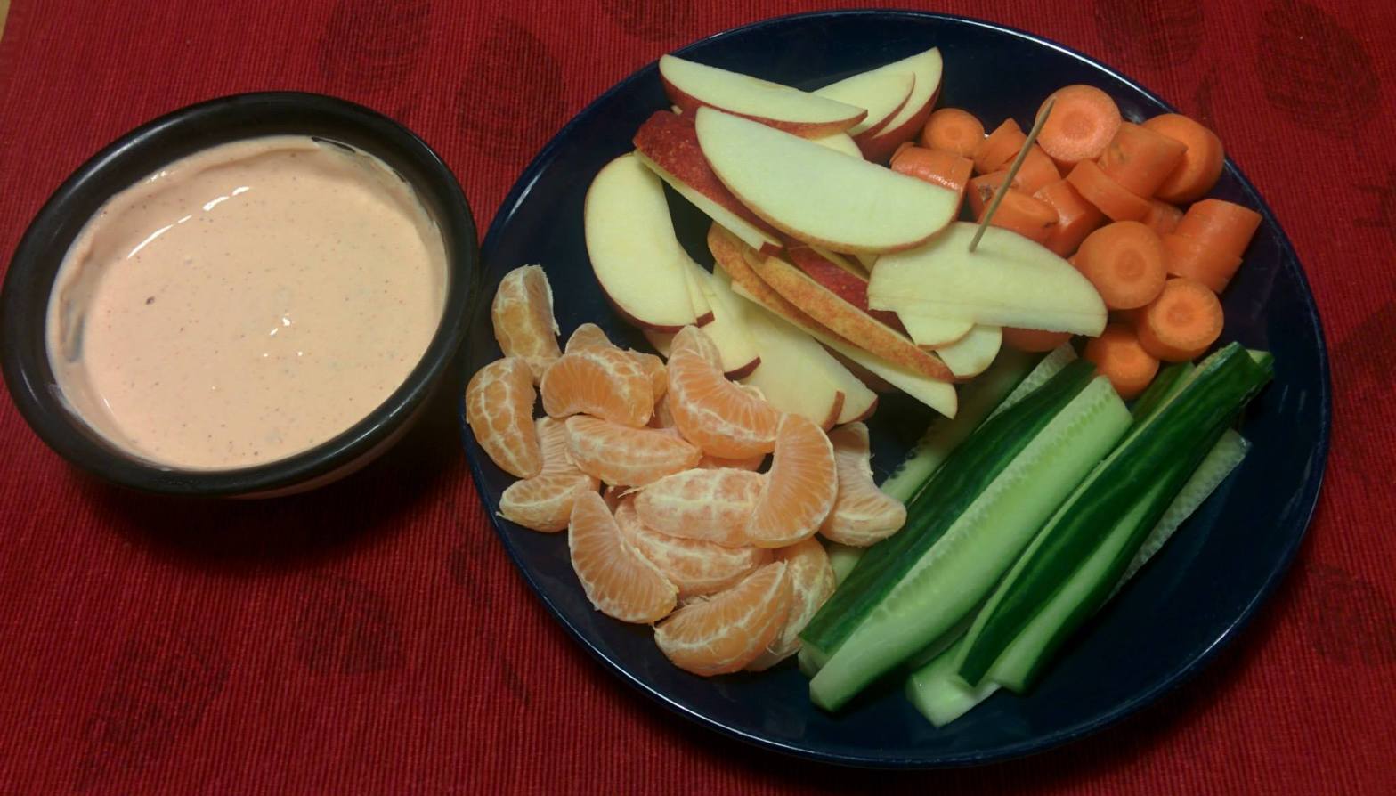 A kermaviiliA dippikastikeB porkkanaB kurkkuB päärynäB kaaliC omenaC klementiiniC meloniC persimmon Sekoita A (dippi). B (pääosin vihanneksia) tarvitsee dipin. C (pääosin hedelmiä) ei tarvitse dippiä.
